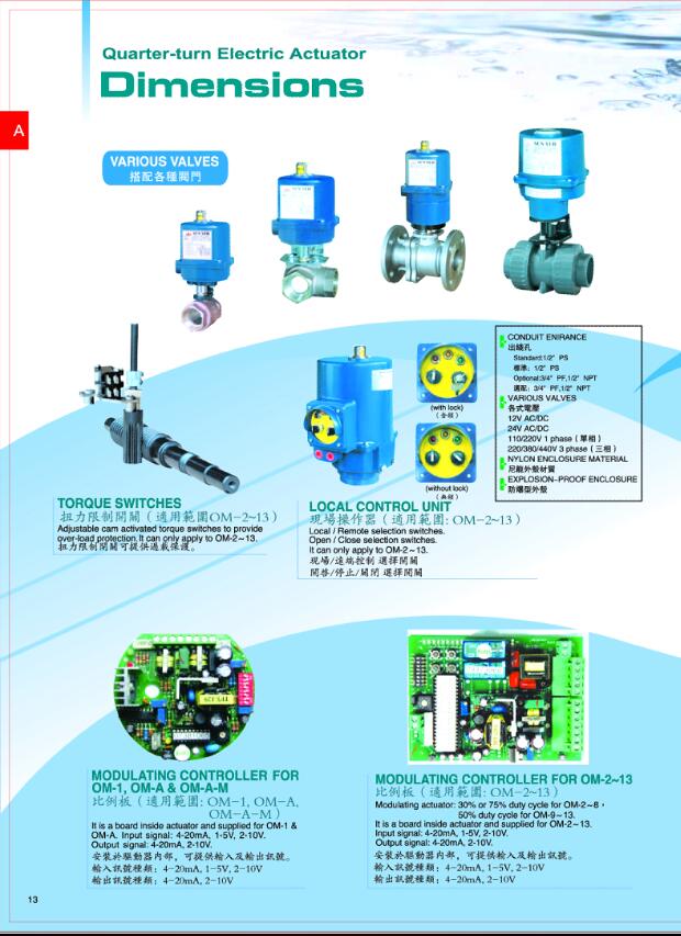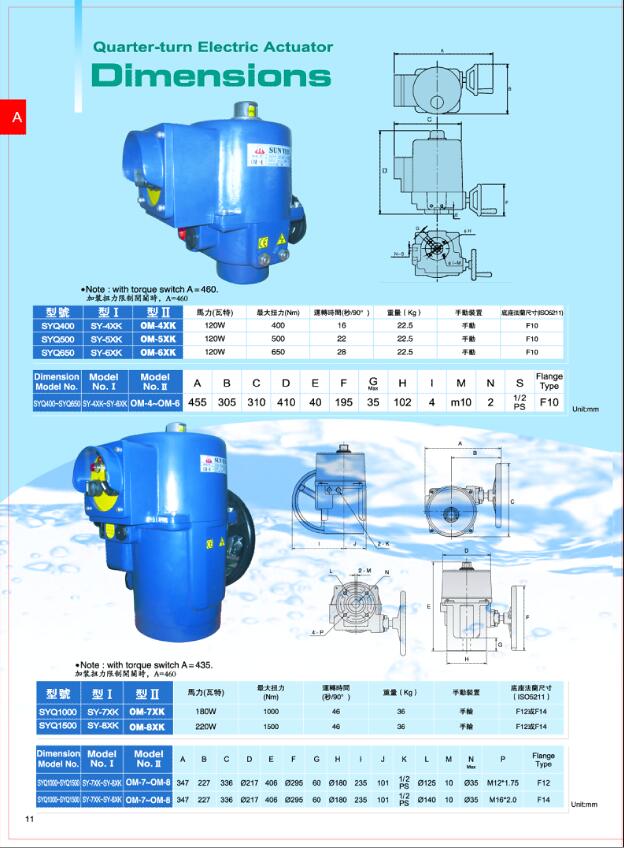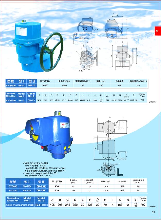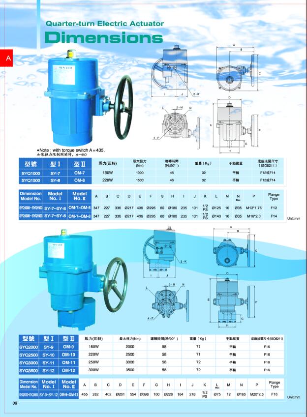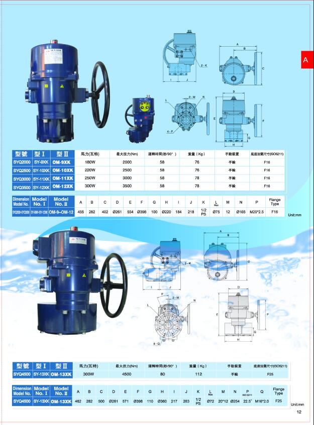 台湾SUN YEH山野电动执行器 OM-7\OM-8\OM-9\OM-10\OM-11\OM-12